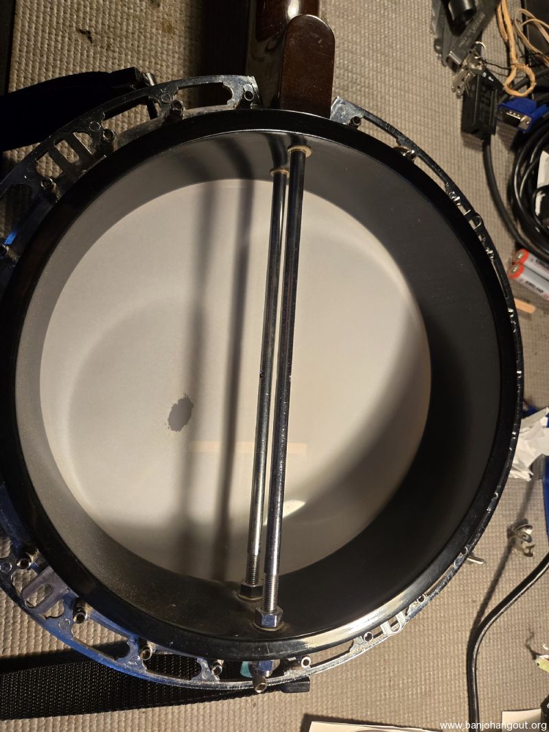 Vintage Gibson RB-100 Banjo, that is in really great condition. Great action, plays nice, sounds awesome. This is a great vintage banjo for a mix of bluegrass and old time finger style playing. At some point the custom inlay pattern was done on the neck, which was originally the dot inlay.