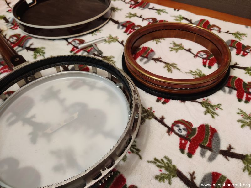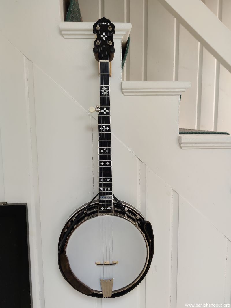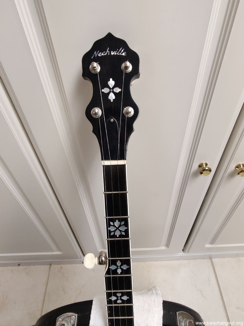 Offering for sale a mahogany Nechville custom classic with original hearts and flowers style neck and nickel plated Corona frame. Not many like this out there. This banjo has the Nechville hybrid tone ring and weighs in at about 8.5 lbs. It has Rickard Cyclone tuners and a flat fretboard. It's in like new condition with hardly a mark on it. Wonderful banjo that is amazingly easy to play, take apart and set back up. A head change takes ~15 mins even for a first timer. Great volume and tone. Bought it here on the BHO to try to resurrect my 3 finger picking , but I'm a clawhammer/two finger guy now and don't need the extra volume. And I got too many banjos! Comes with very sturdy Access case also in great shape. Happy to answer questions via email and thanks for looking.