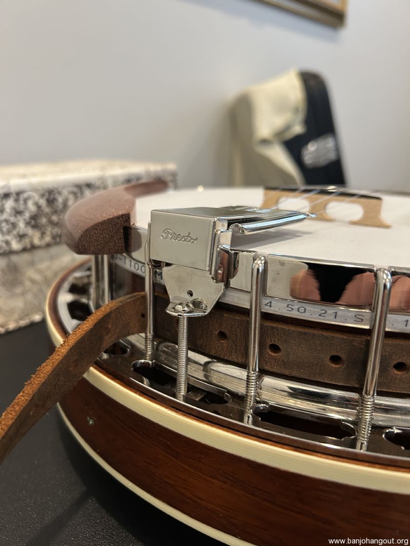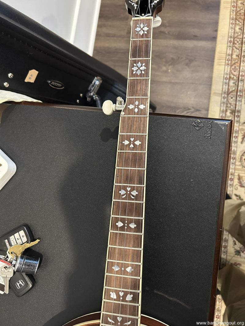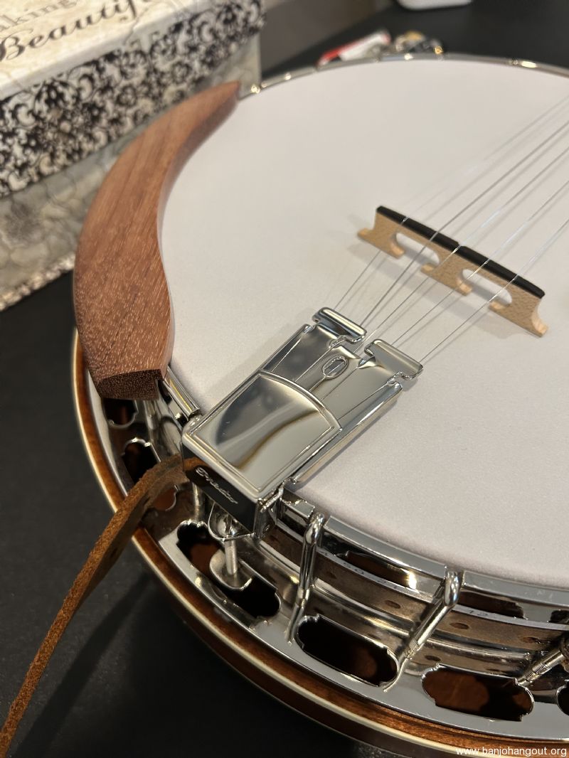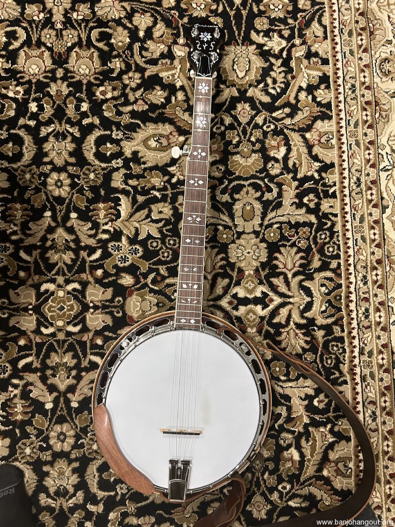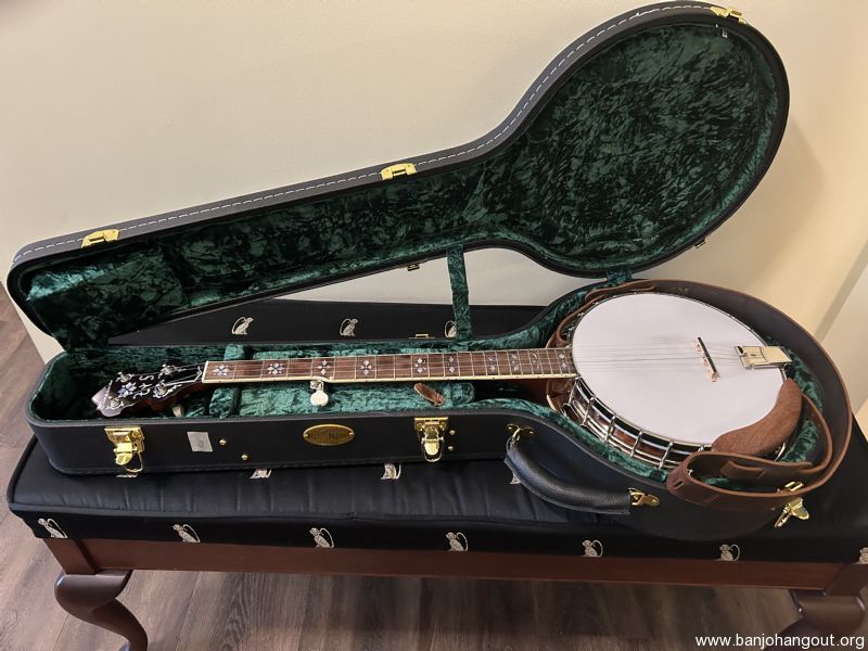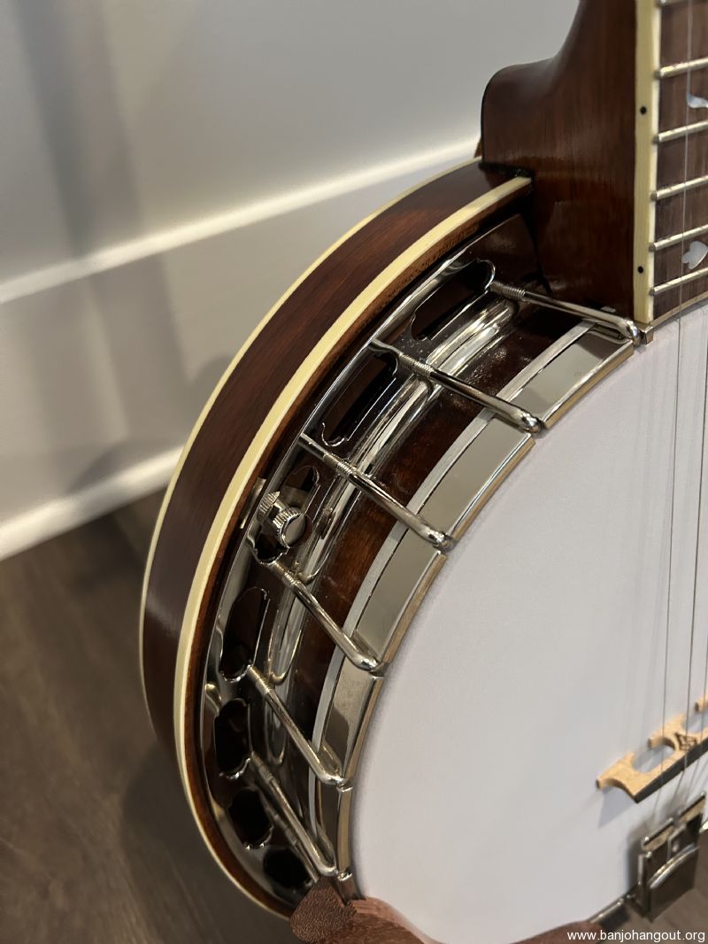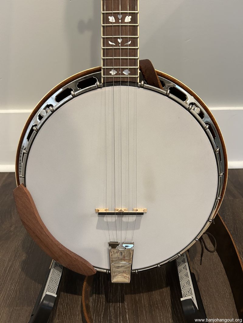 I will include both the original arm rest as well as the wood arm rest shown in the photos. I'm only selling because I'm trying to scale down my toys as I age. Strap is not included. The hard shell case is from Access and is brand new, also pristine. Oh, and did I mention that I'm now offering free shipping? I have sold several banjos here at the hangout, all to complete satisfaction of the buyers. If you would like more information please don't hesitate to contact me.