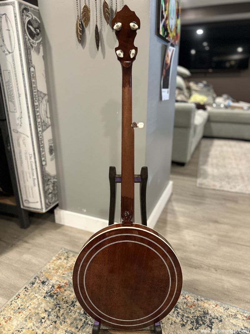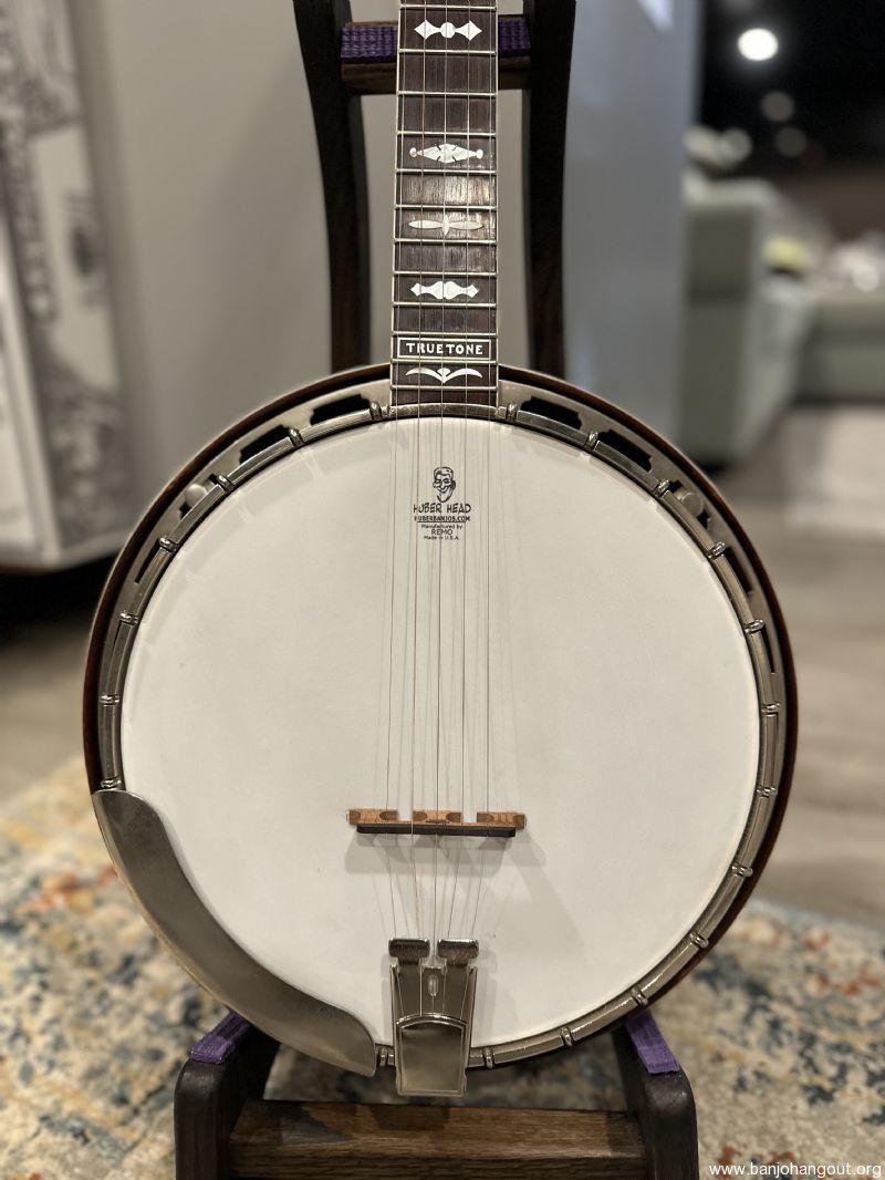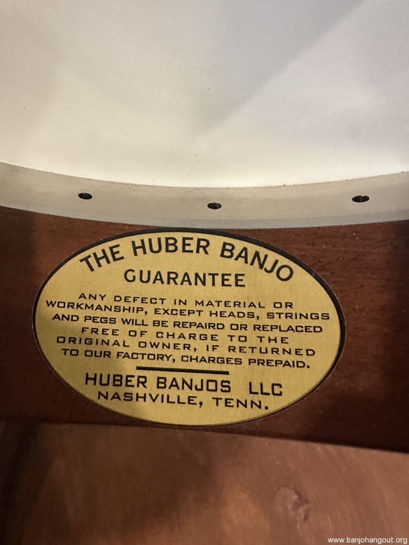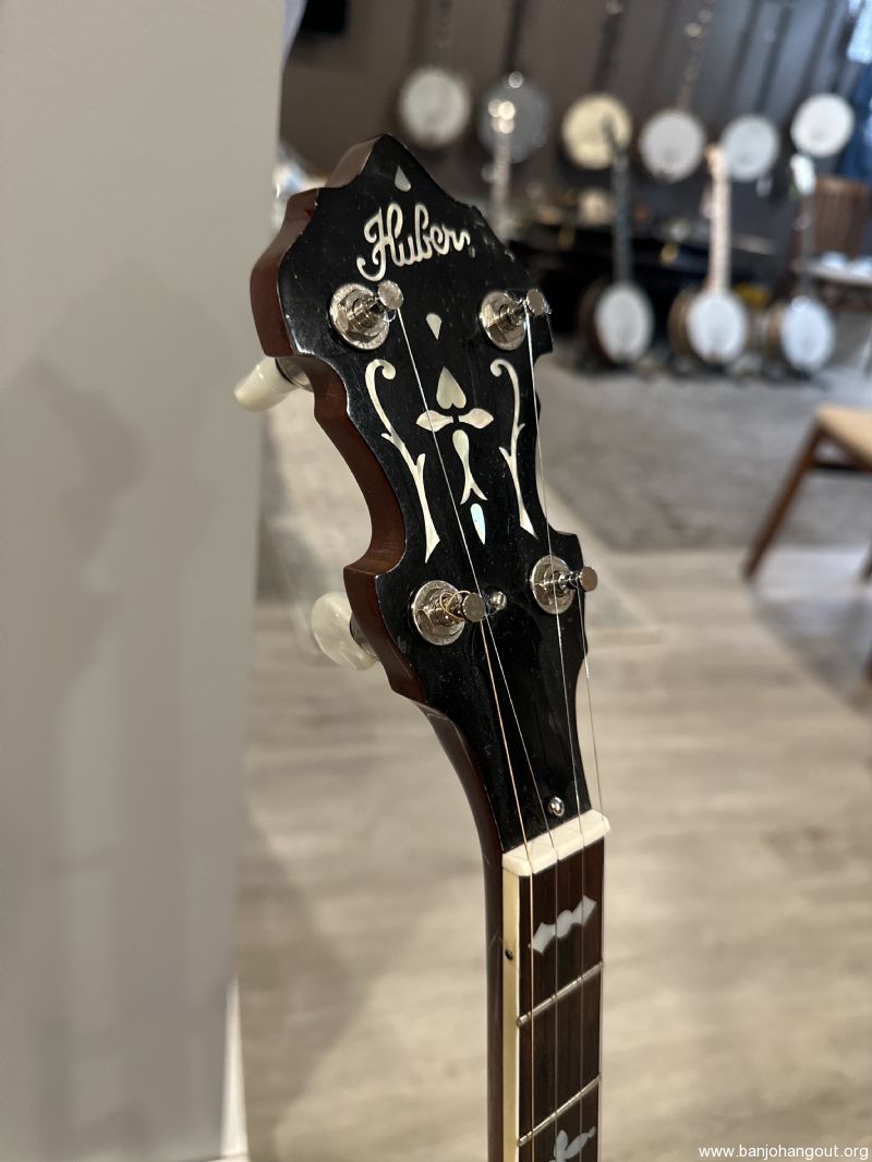 This Huber VRB 3 Banjo was manufactured in Nashville and has the same features if you bought a new one today from Steve: an engineered rim, a Huber HR-30 tone ring, and a mahogany neck and resonator. The Huber VRBs sound closer to a Gibson prewar banjo than anything else on the market today. Huber banjos are on backorder because of a tornado that hit their factory over the summer. Fortunately, they are back in business, but it may be a while before you can get a new Huber VRB 3 from the factory.