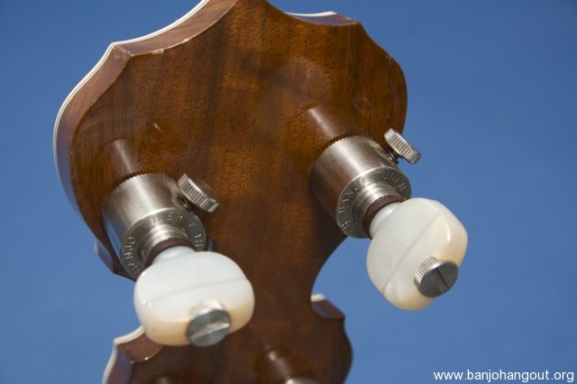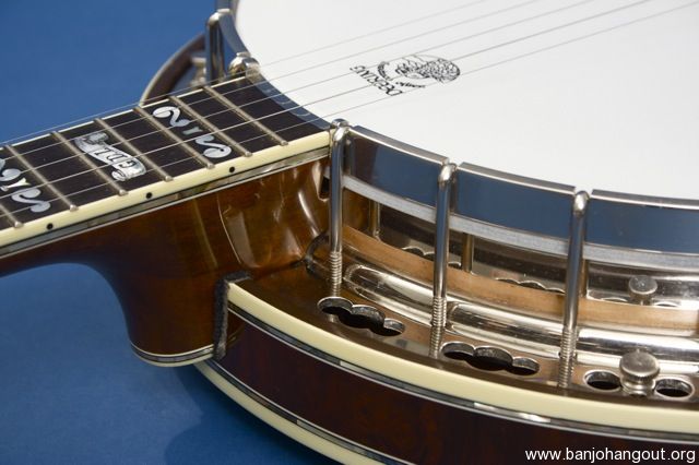 Neck Wood: Quartersawn Curly English Walnut?Neck Shape: Comfortable "D" Shape?Stain: Brown Mahogany?Finish: High Gloss?Nut Material: Bone Nut?Tuners: Deering Planetary Tuners?5th String Tuner: Deering Gotoh Geared 5th String Tuner?Frets: 22 Glued In Nickel Silver Frets