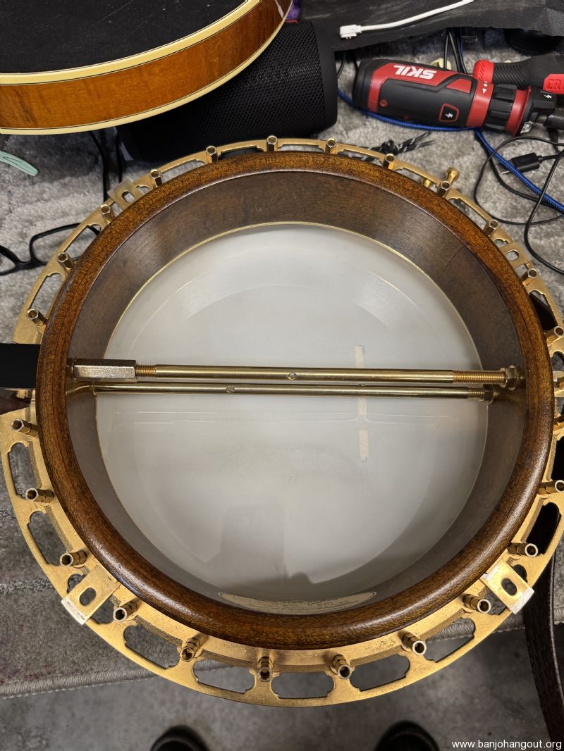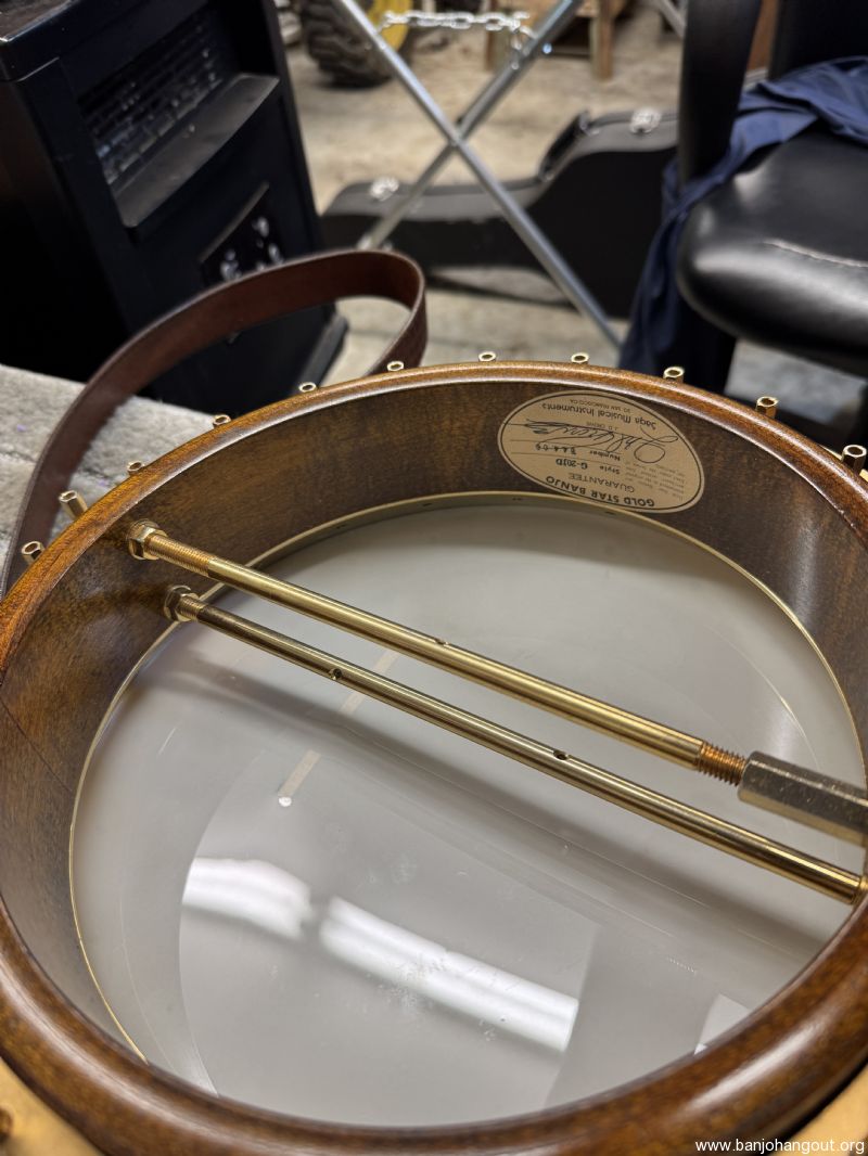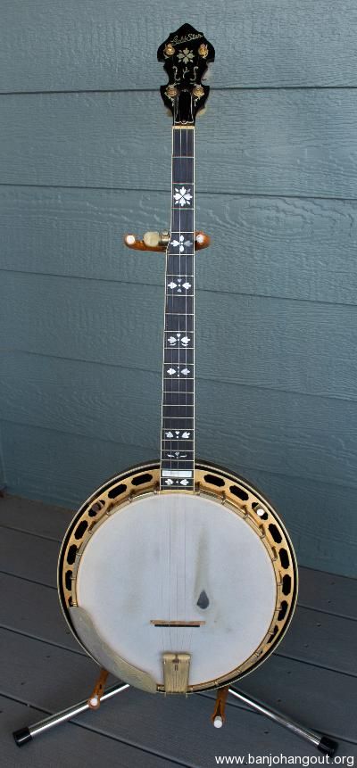 All original 1984 Gold Star Crowe model. Some of the gold is worn off and there are a few marks on the back of the resonator but none are through the finish. All tuners reworked by Dean Meece. 1-7 frets are new. The tailpiece was missing it's cover when I got it from the original owner. Head and bridge are replaced. Has tone for days. Would be willing to trade for an original Granada. Also willing to meet within 4 hours of my location.