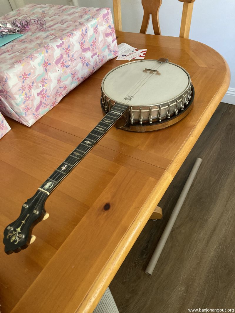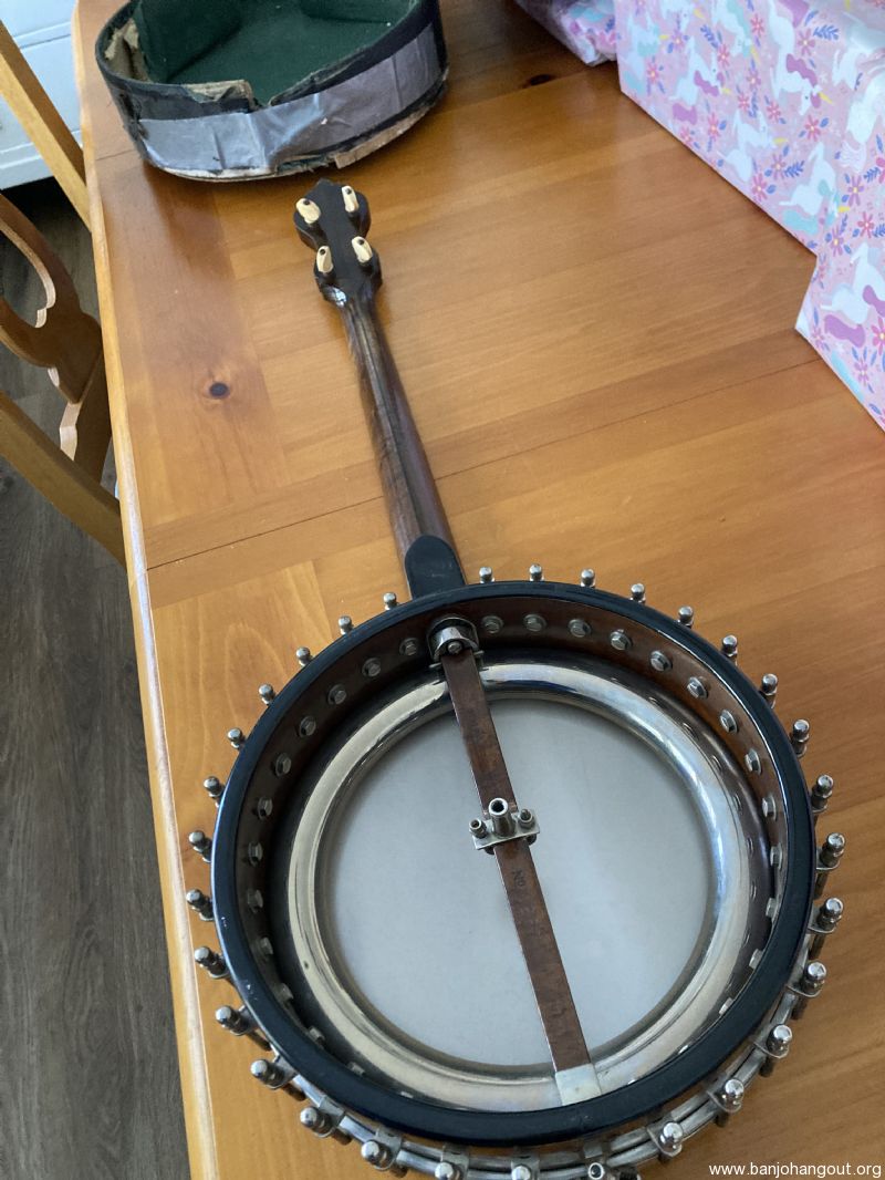 Beautiful 1915 Washburn tenor banjo in outstanding condition,all original case queen pride of ownership shows no wear or patina . Style A has all nickel plated hardware including full bracket band and donut tone ring giving it a beautiful full sweet tone and great volume. See pictures for condition. Dark stain on curly maple neck and pot pie plate Vega style resonator in perfect condition. A professional players dream banjo