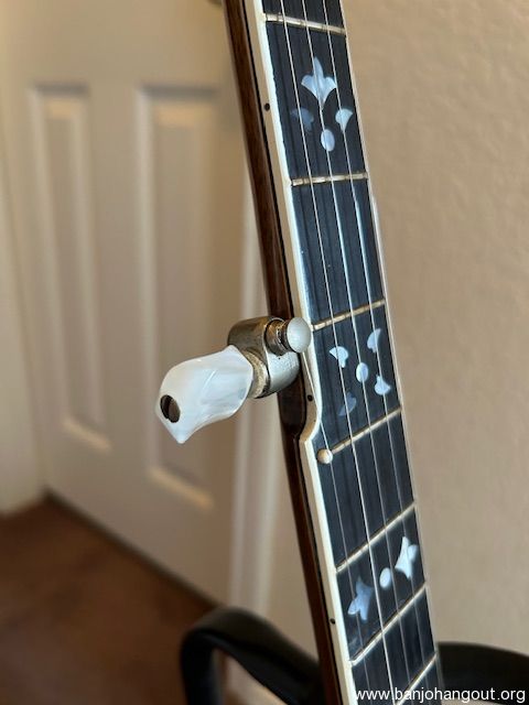 There are no scratches, cracks or dents anywhere on this banjo, no fret wear and hardly any patina on the metal parts. It comes with new strings, new Remo head and its original Gretsch case. But above all, it sounds wonderful.