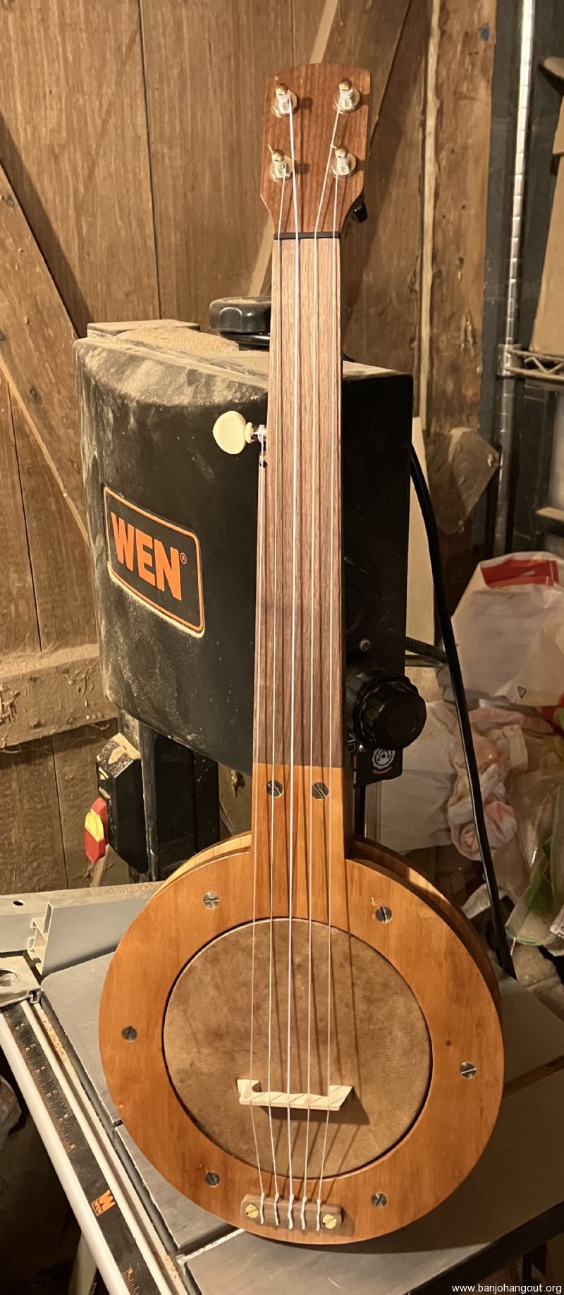 Decided to put this pocket-sized banjo together out of some extra pieces I had made up some time ago.