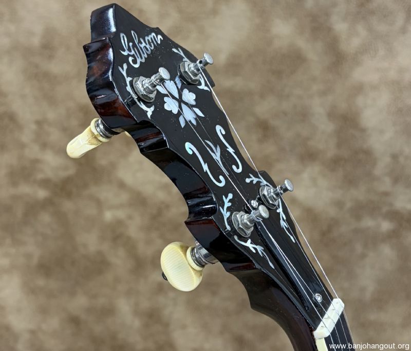 Here's a fantastic Style 1 from Gibson in 1930. This Style 1 was a tenor F.O.N. 9690-32 now fitted with a Frank Neat maple neck and Sloan 20-hole tone ring. The hardware shows normal patina along with the flange having some "pull". All in all this banjo is a great bluegrass machine with great playability and tone. If you need additional pictures or have any questions, don't hesitate to ask. Thanks for looking! Here's video: youtube.com/watch?v=ORWzggQY1bA