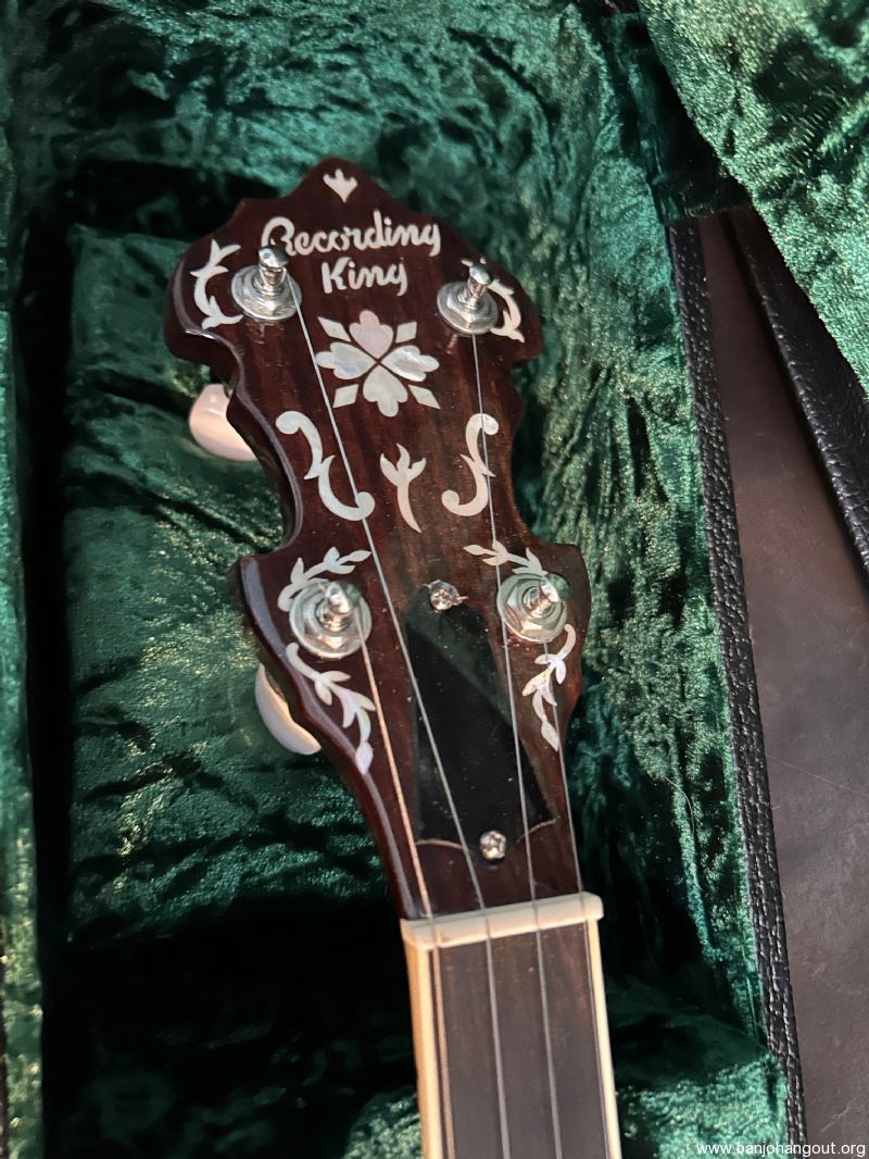 Recording King RK76 with case. Purchased new 4 years ago as my primary banjo. Last year purchased a new banjo so ready to pass this one on. Wood and bright work all in excellent condition. Head shows signs of wear. Replaced arm rest (original in case), all else original. Case shows some where but is solid condition. Banjo hasn't been played much in past 12 months so likely needs to be set up.