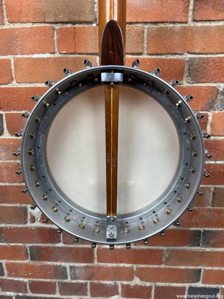Mahogany neck, with a cast aluminum pot/tone ring construction.