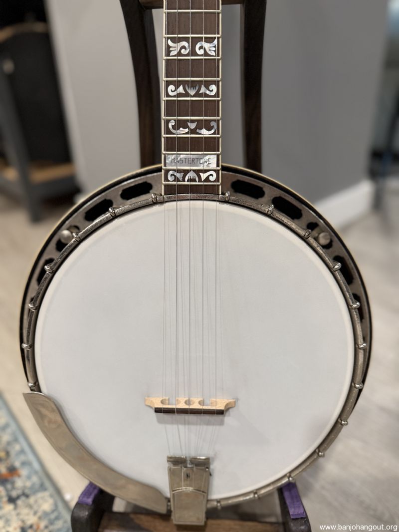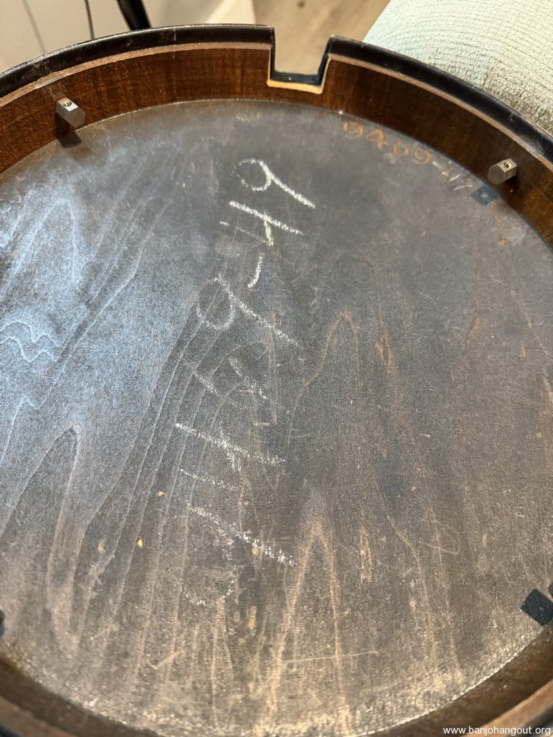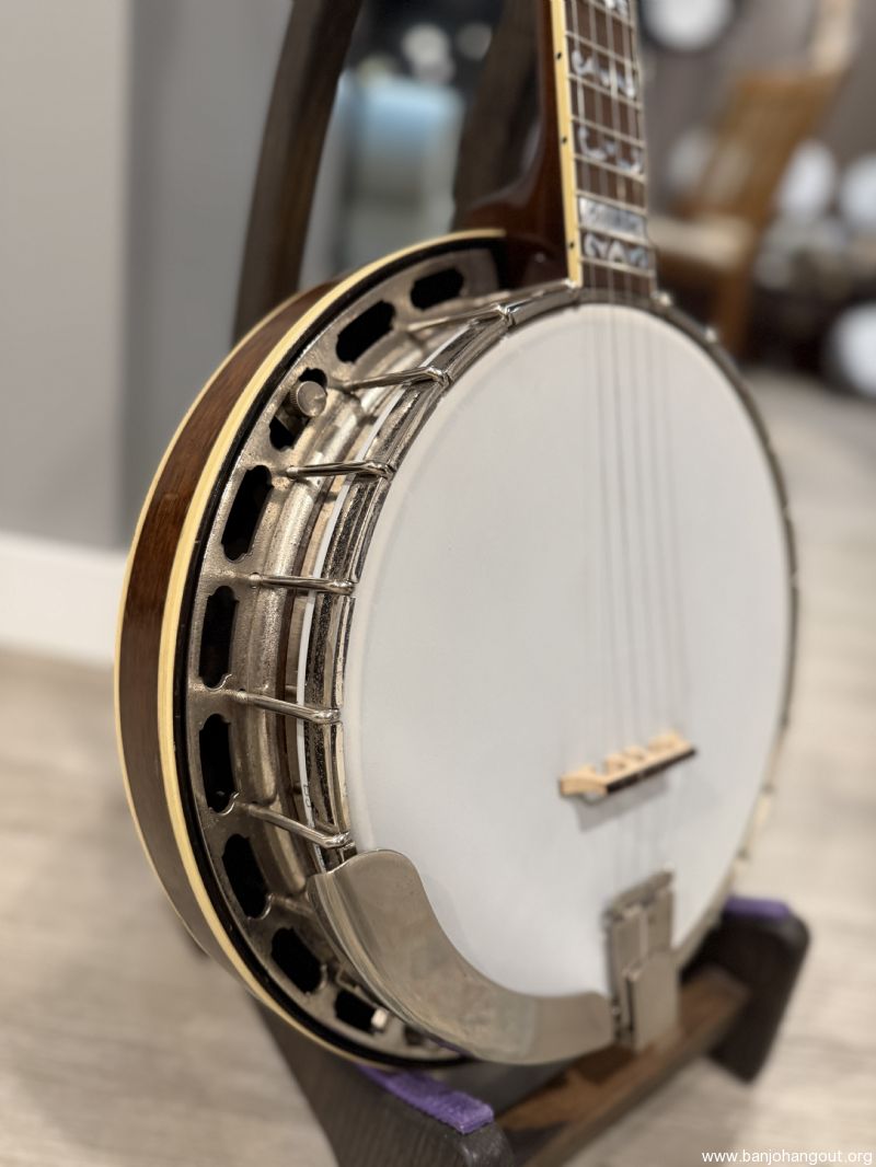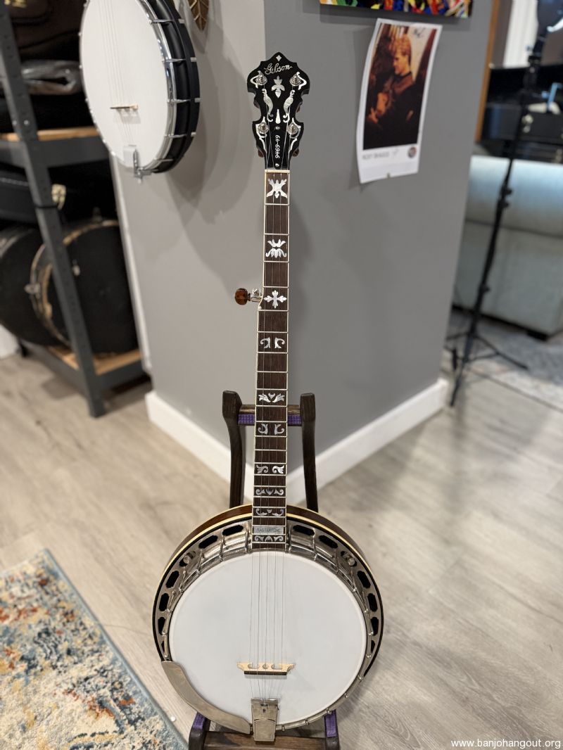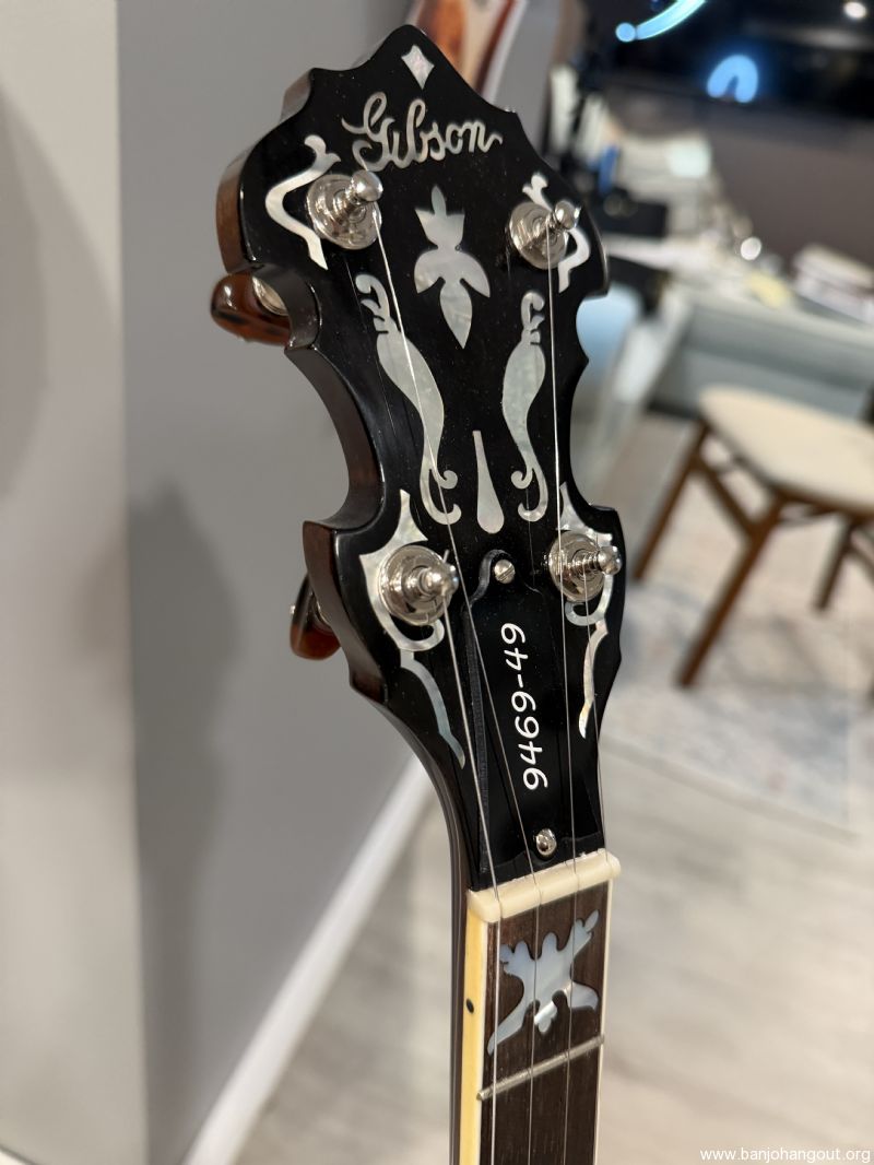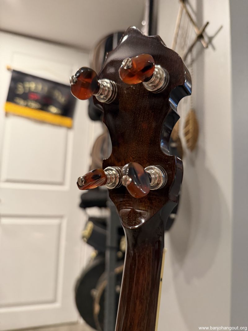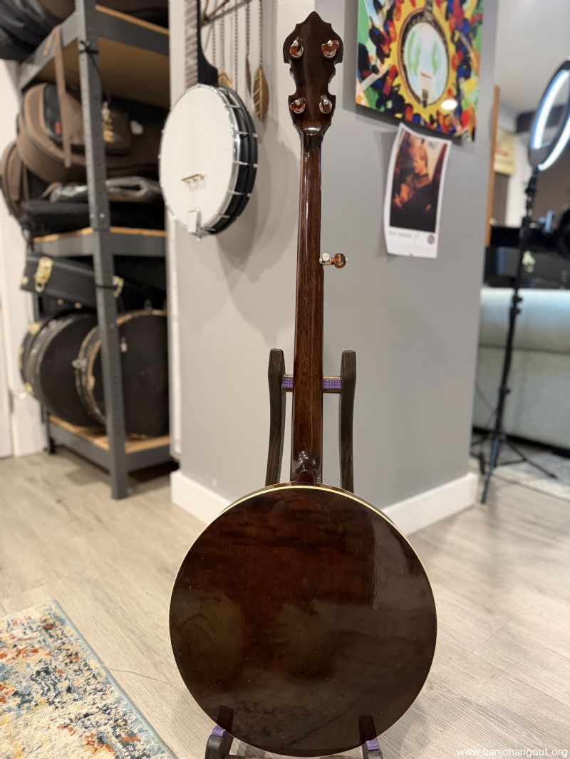 FON 9469-49. This Gibson Style 2 Banjo features a Sloan Tone Ring and all of its original hardware. It has that beautiful walnut look and sound; the perfect CRACK for hard driving bluegrass tone! The neck was made by David Houchens who worked at Stelling for many years. Check out the wonderful custom truss rod cover and custom amber buttons. This banjo is in fabulous condition and features a fresh setup; sounds and plays exactly as it should!