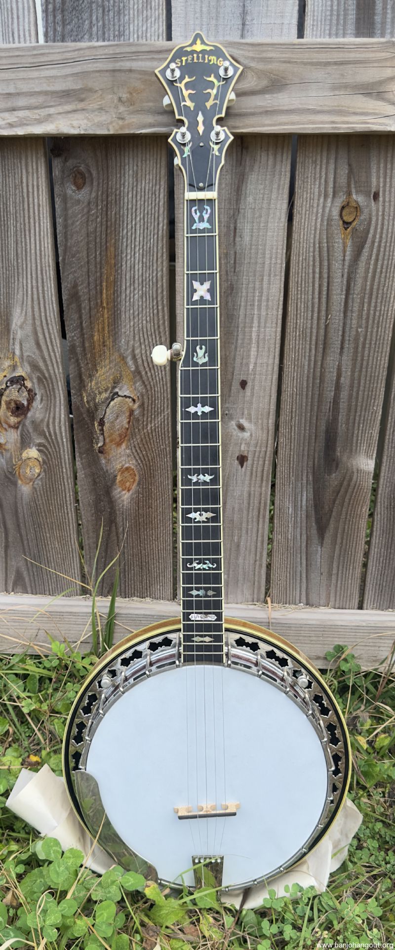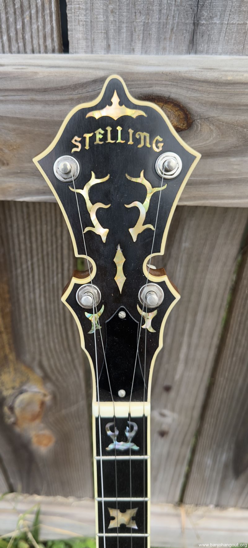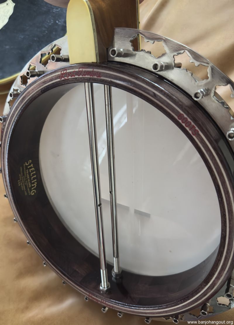 Without a doubt the best sounding and most pristine condition Stelling Staghorn I've ever had. I have a real fondness for the early Stellings and this one has stunning woods and the greatly superior (in my humble opinion!) 5 piece neck used on some early models. I purchased this banjo from the original owner who brought the banjo back to Stelling in 2015 for rim issues, a flange crack, worn frets, and frozen tuners. Geoff installed a Tony Pass rim, a new flange (drilled for the Kershner tailpiece which the original owner preferred) as well as then-current two-band Schaller tuners, the now standard compensated nut for this banjo, and completely refretted the fingerboard (all factory work). The banjo also received a new head. Overall, the banjo looks brand new.