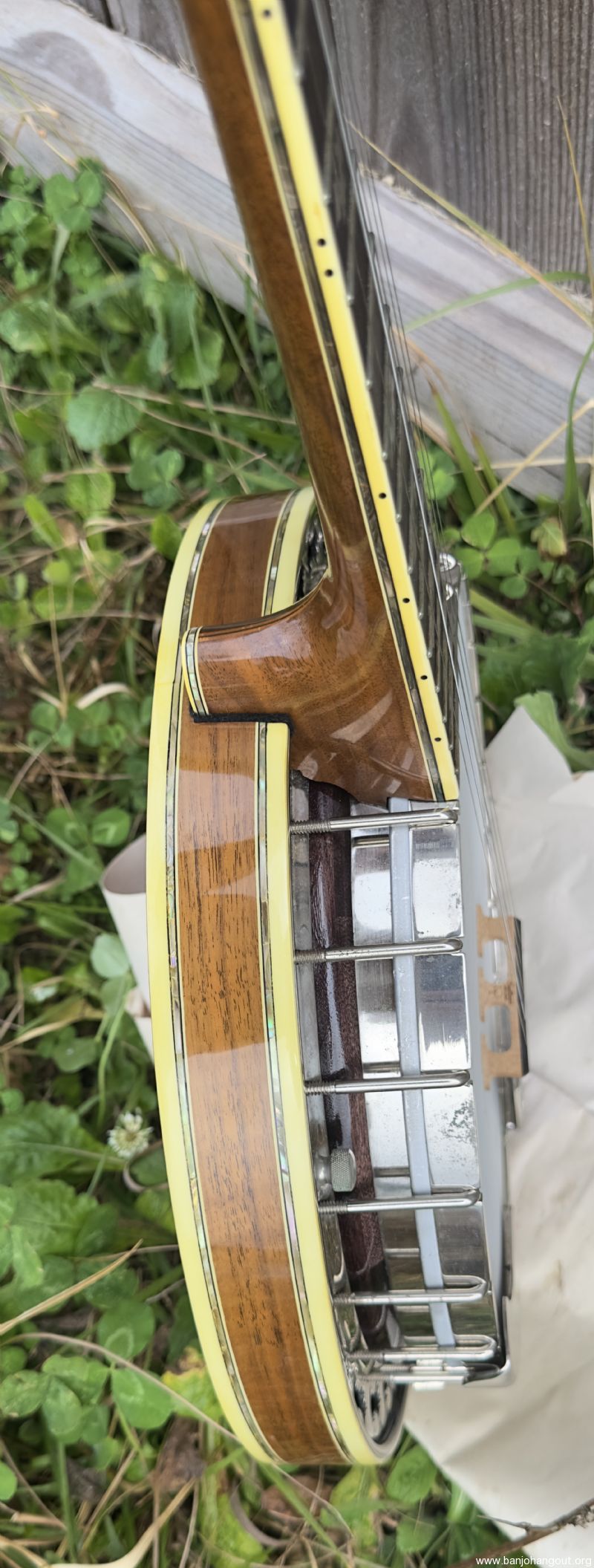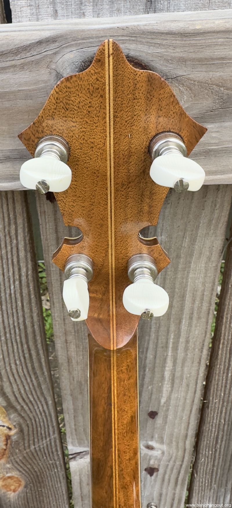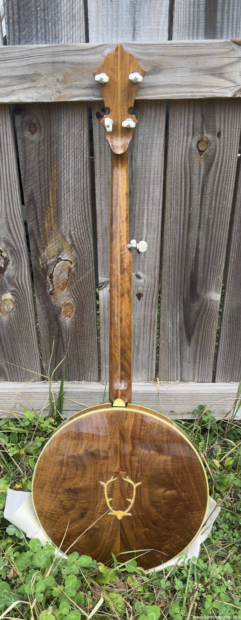 Without a doubt the best sounding and most pristine condition Stelling Staghorn I've ever had. I have a real fondness for the early Stellings and this one has stunning woods and the greatly superior (in my humble opinion!) 5 piece neck used on some early models. I purchased this banjo from the original owner who brought the banjo back to Stelling in 2015 for rim issues, a flange crack, worn frets, and frozen tuners. Geoff installed a Tony Pass rim, a new flange (drilled for the Kershner tailpiece which the original owner preferred) as well as then-current two-band Schaller tuners, the now standard compensated nut for this banjo, and completely refretted the fingerboard (all factory work). The banjo also received a new head. Overall, the banjo looks brand new.