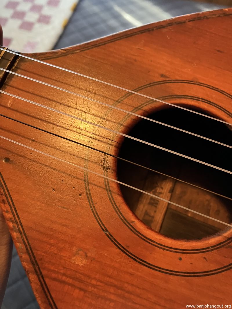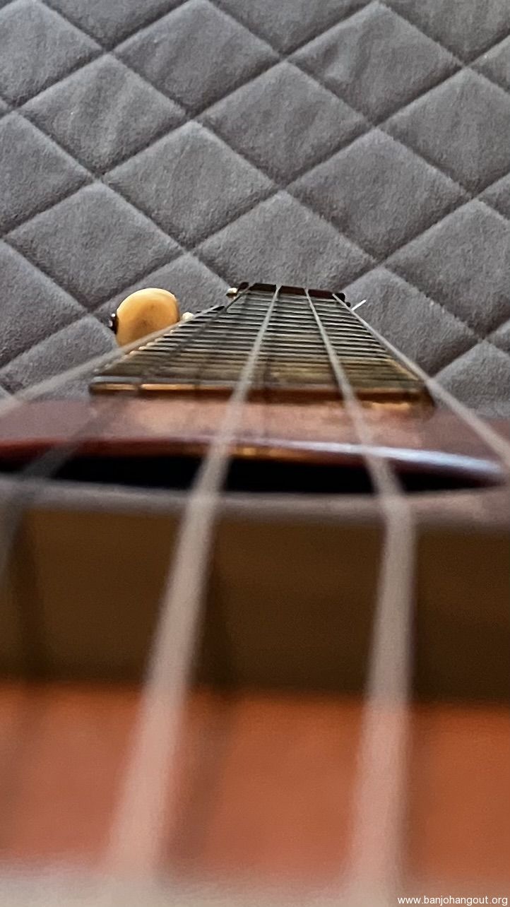 I’ve done some recording with it, and it’s been a wonderful instrument, but feel I’ve not been giving it the attention it deserves. I’ve thought of it, with the stringing and tunings, of it being my “banjo lute,” having a lutish or classical guitar sound. It lends itself well to slow, fingerpicked pieces, much of which I recorded on it, but its sounds ok clawhammer style.
