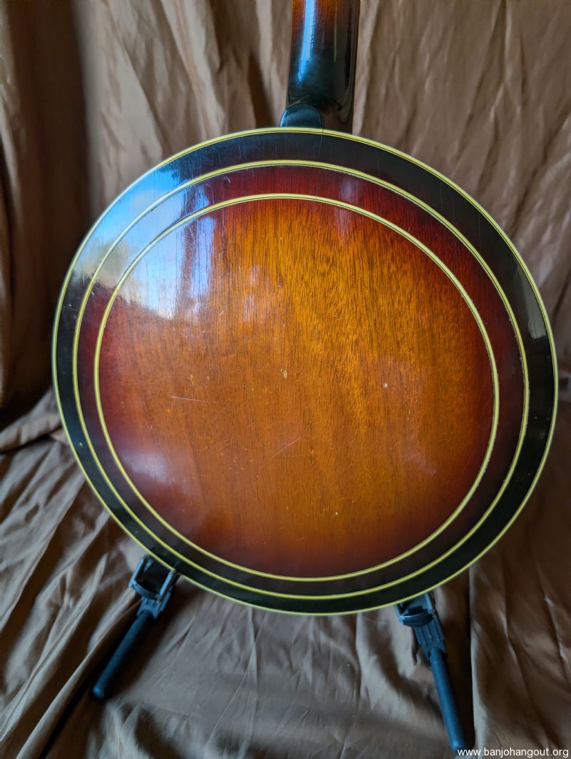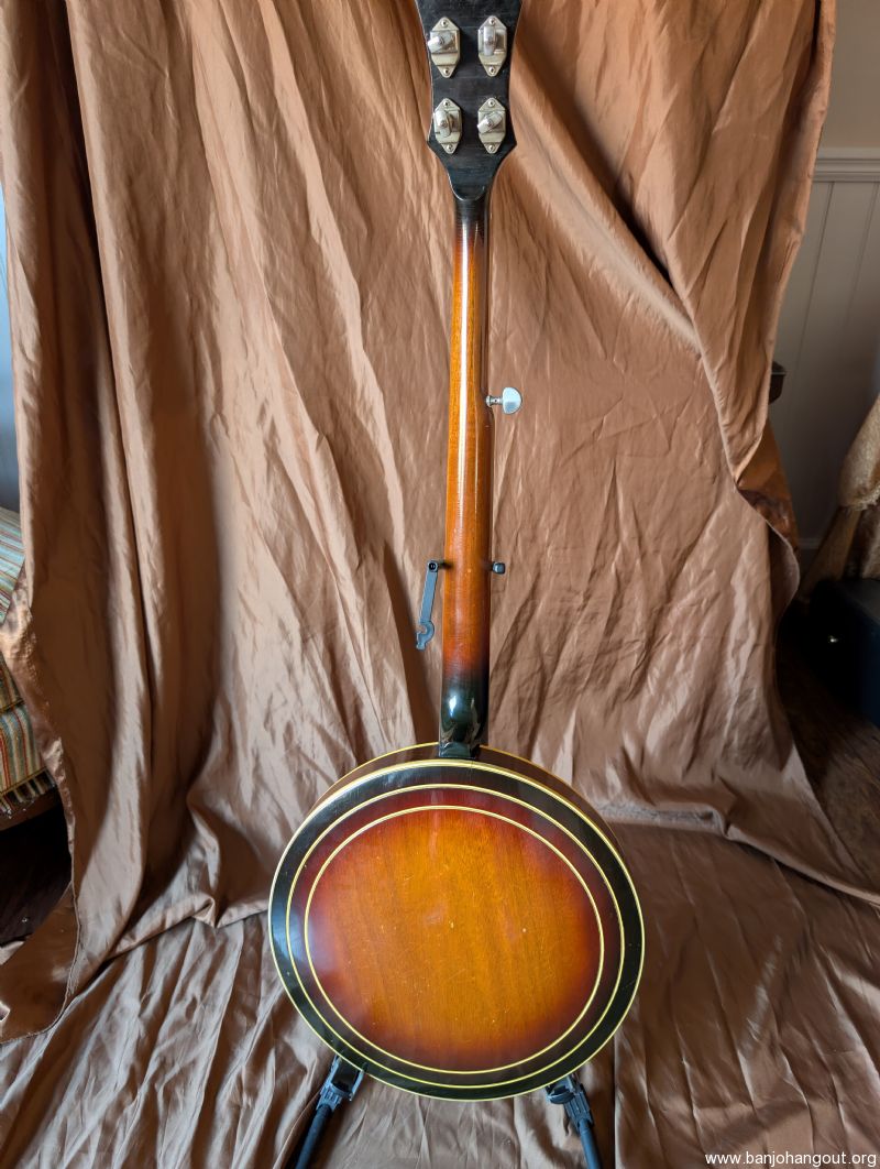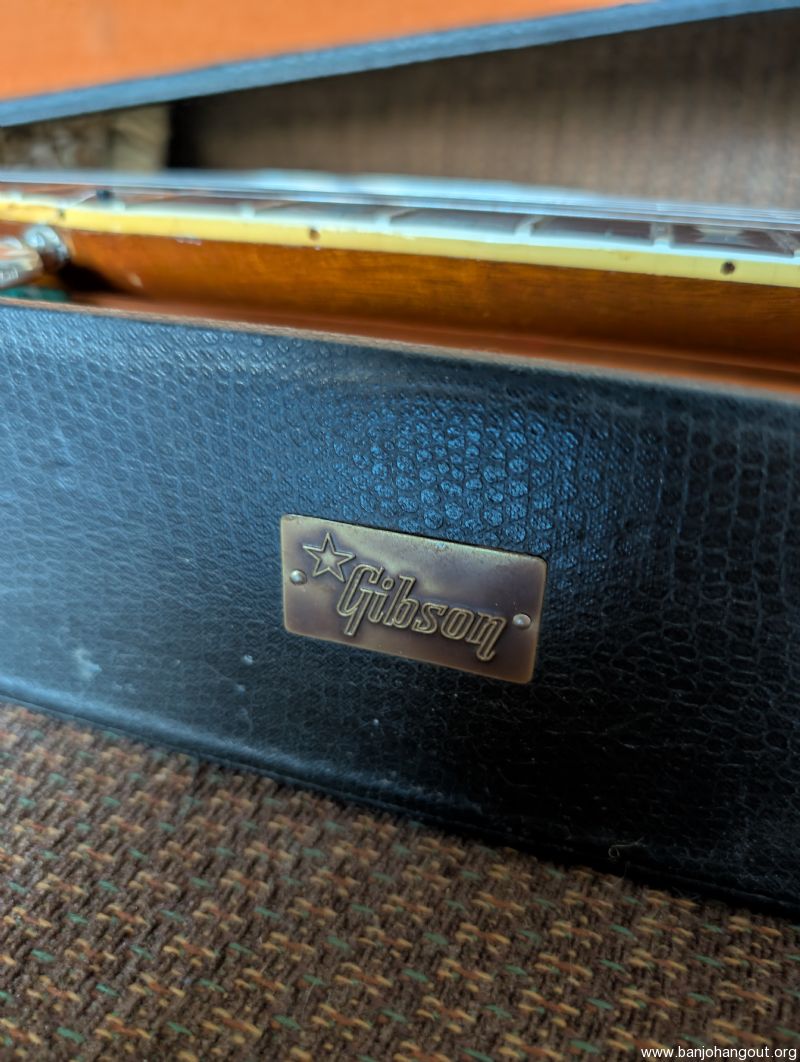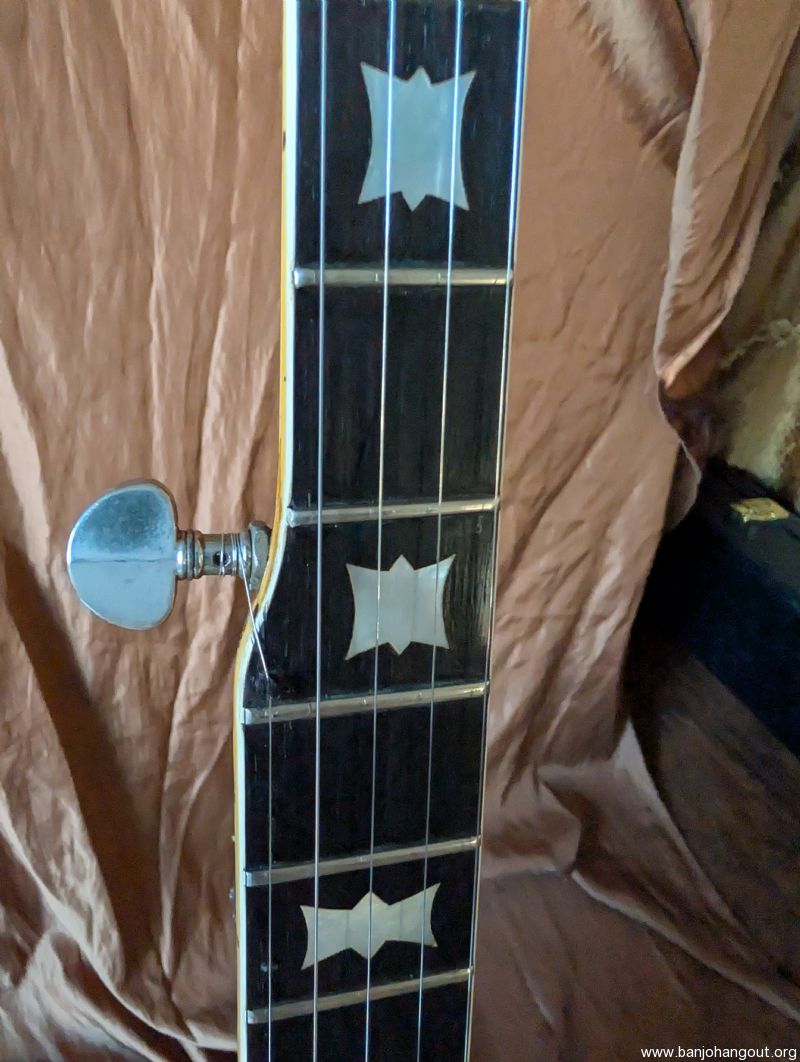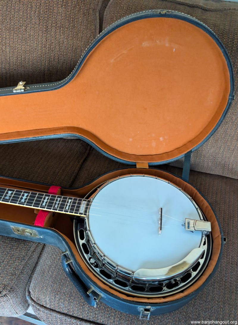 Very nice 1964 bowtie. All original including case. One of the best bowties we've had come thru. Excellent condition, original flathead ring and thin rim, friction 5th string peg. It's a great sounding and playing banjo. Setup to go just needs a strap.