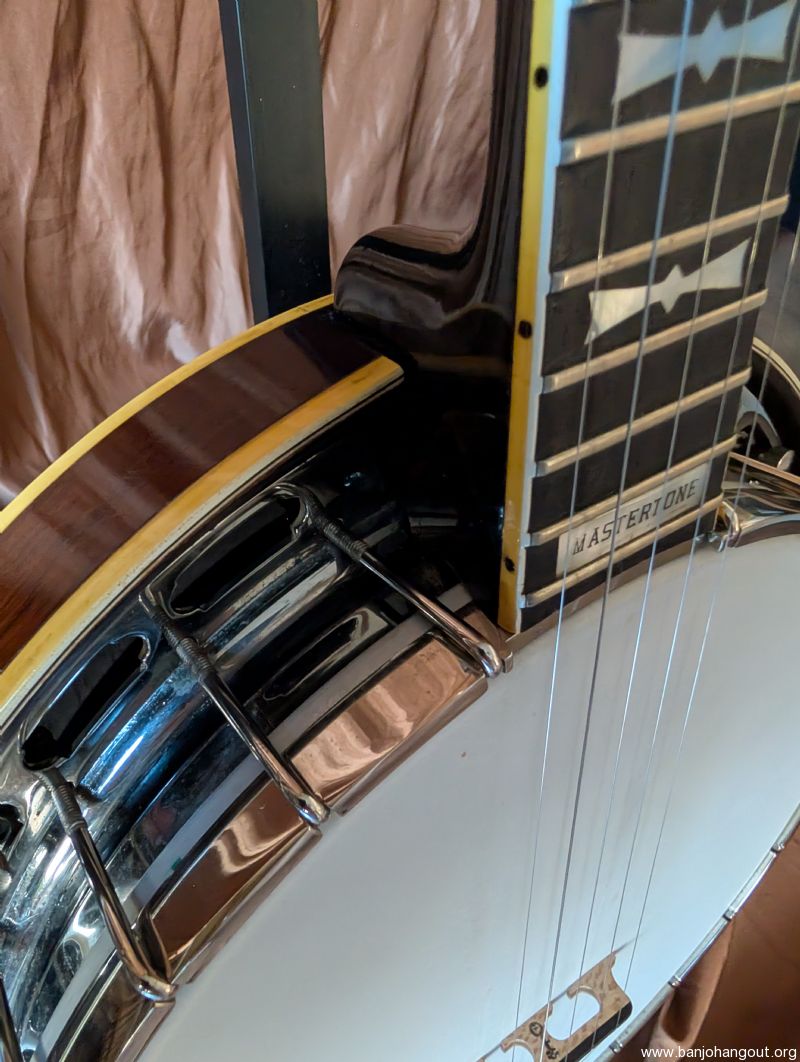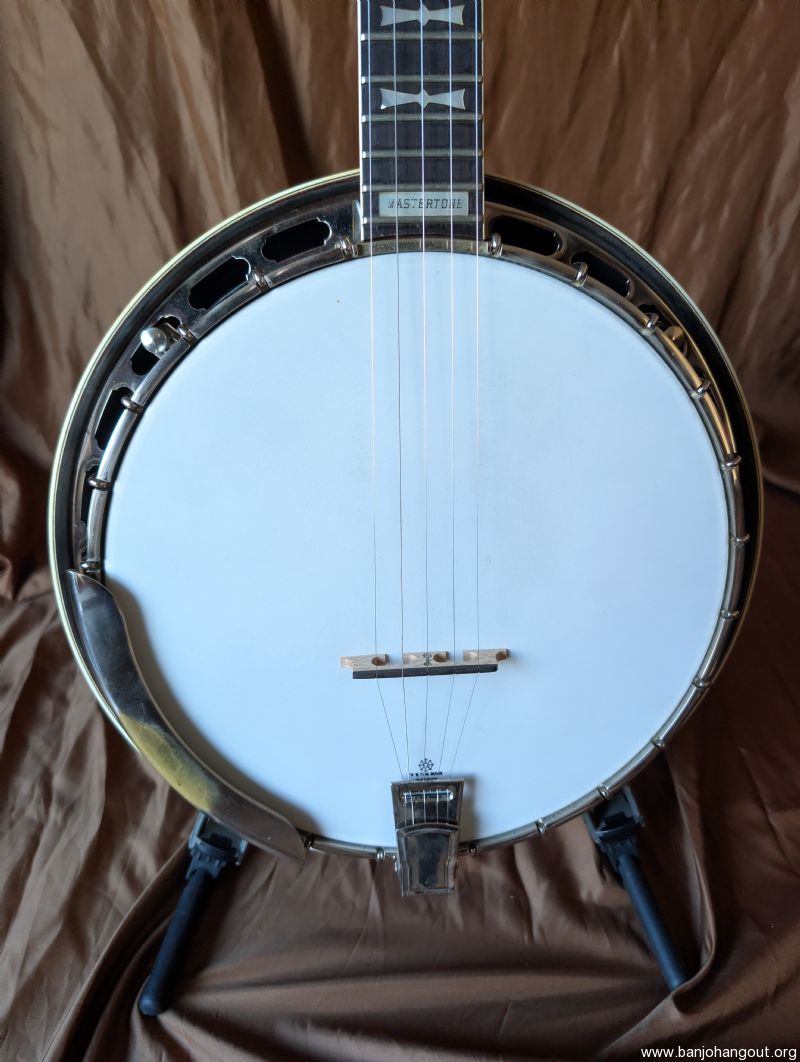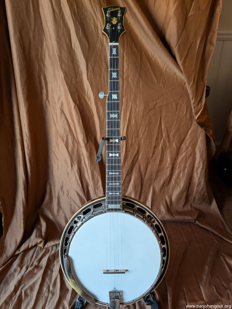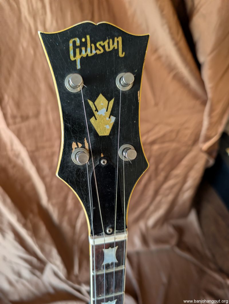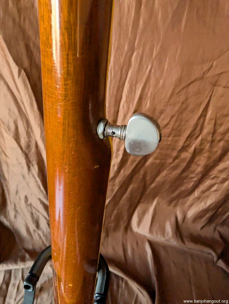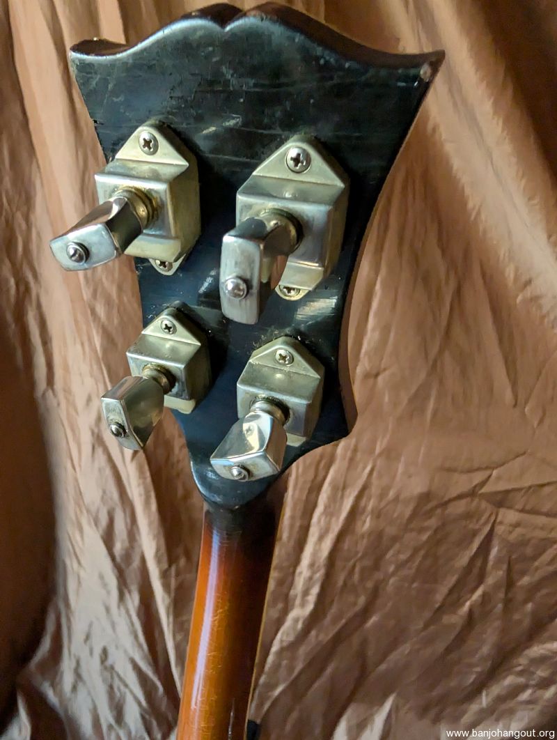 Very nice 1964 bowtie. All original including case. One of the best bowties we've had come thru. Excellent condition, original flathead ring and thin rim, friction 5th string peg. It's a great sounding and playing banjo. Setup to go just needs a strap.