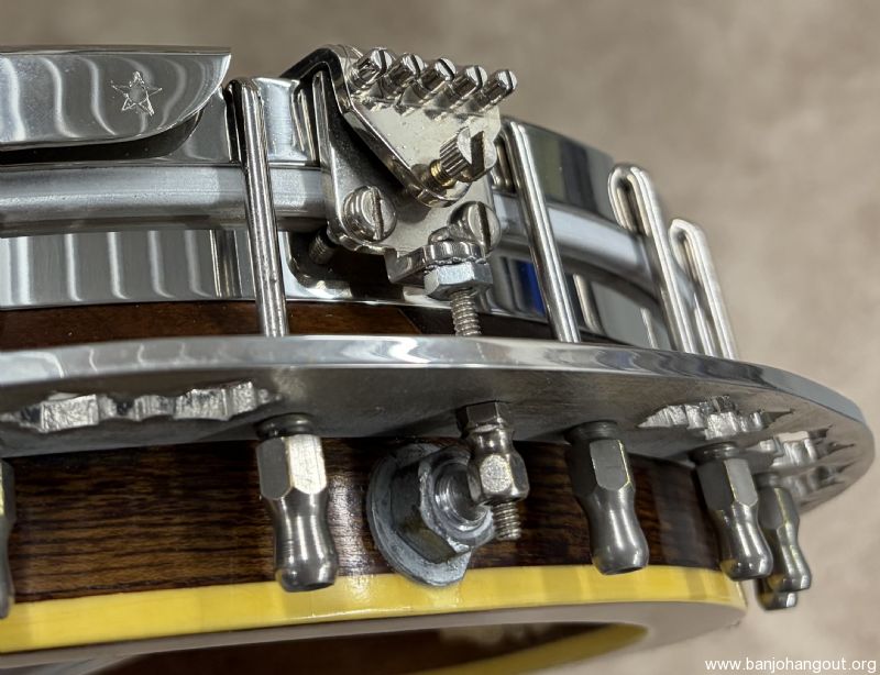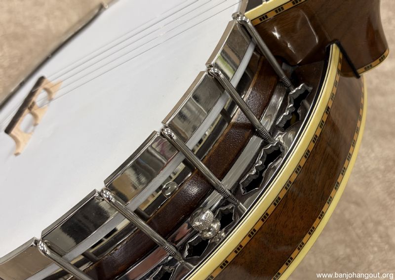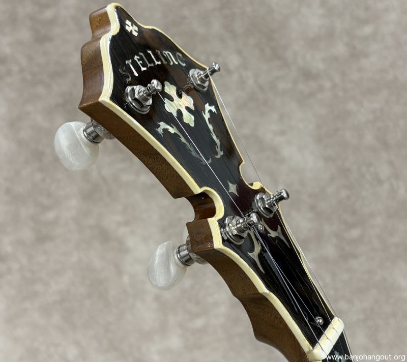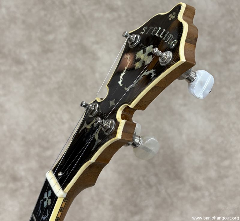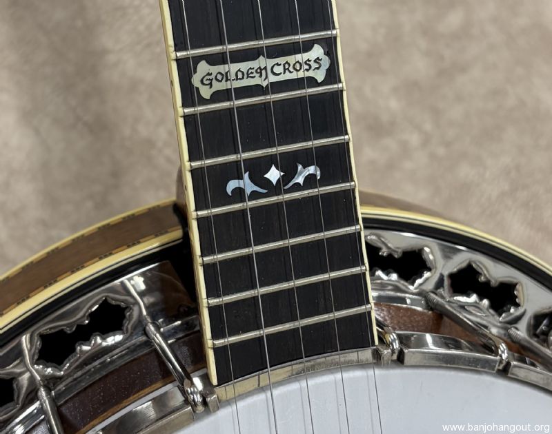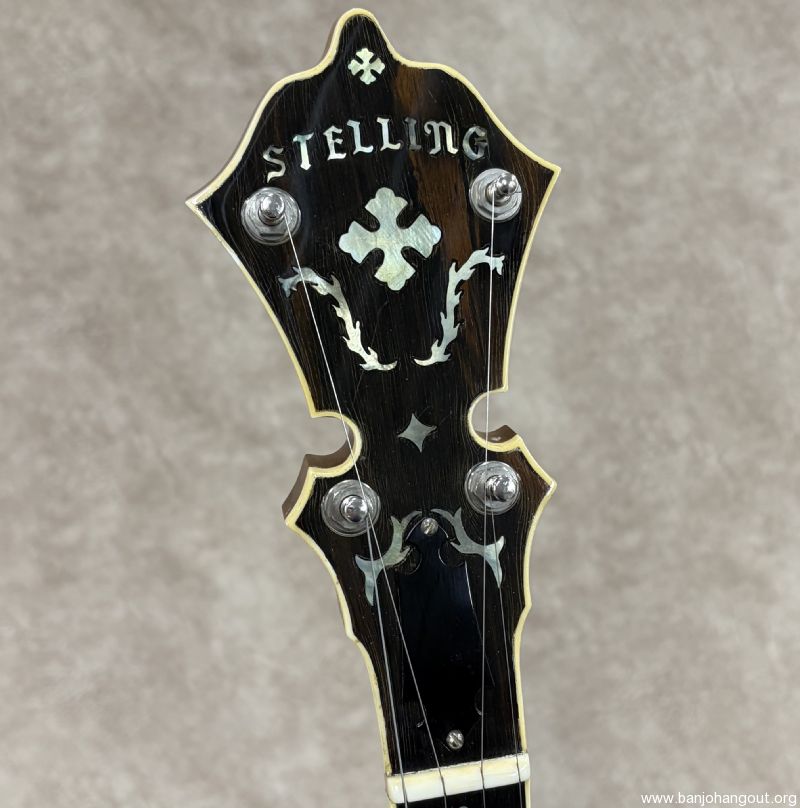 Here's a vintage Stelling "Golden Cross" that remains in excellent condition. The Golden Cross features a walnut resonator and neck with the classic Stelling feel and beautiful nickel plated hardware. This particular one has the factory upgraded rim from Stelling and also this banjo is 1 number from Don Reno's Golden Cross. The banjo ships in its original case which shows cosmetic wear but is structurally 100%. If you have any questions or desire additional pictures, don't hesitate to ask. Thanks for looking!